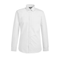 Easy-to-iron slim fit shirt. Effortlessly stylish, twin rear darts for a defined silhouette. Semi cutaway collar looks fantastic with or without a tie! Long sleeve, white only. Matches Rapino classic fit men's shirt.